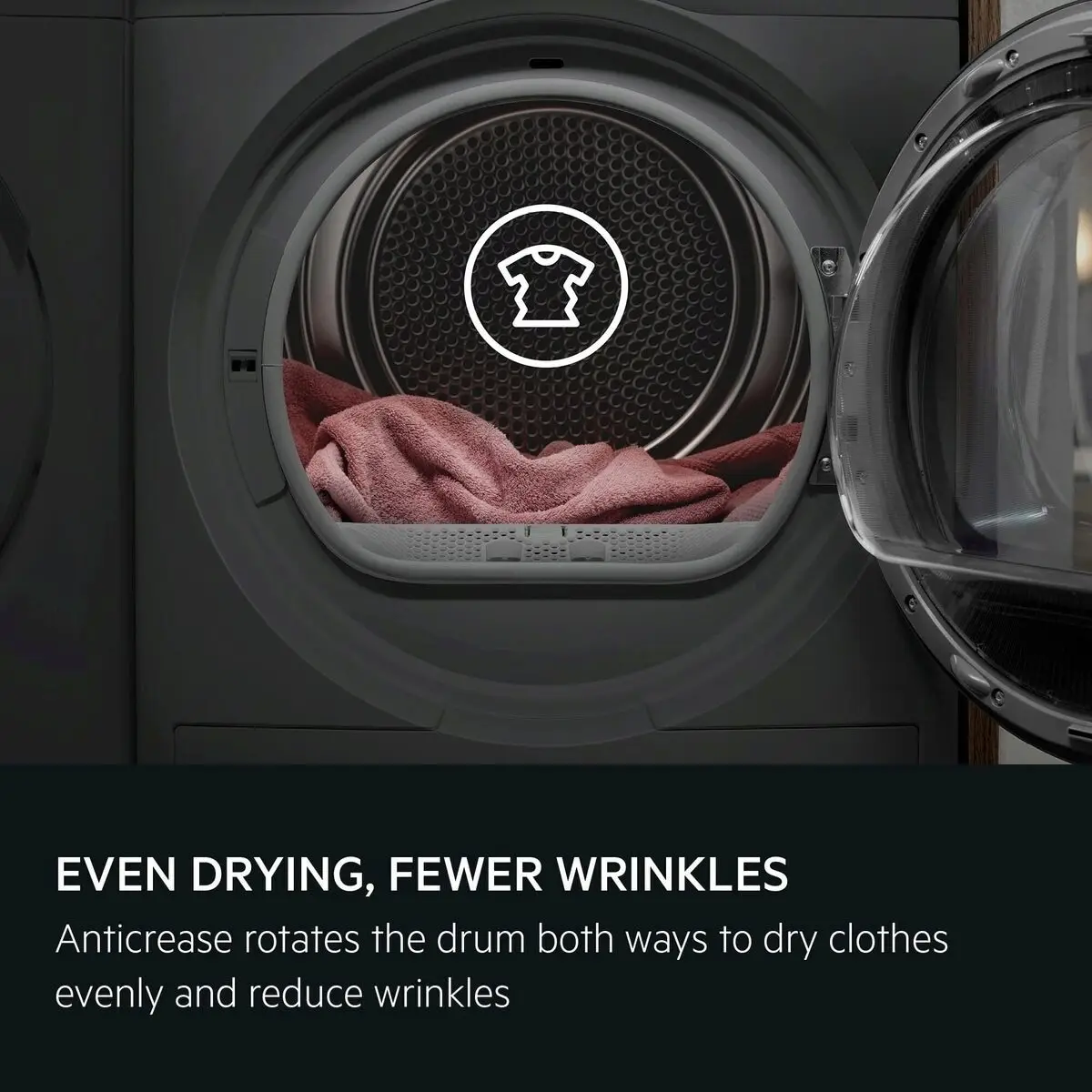 Il meccanismo di inversione dell’asciugatrice garantisce che il senso di rotazione del cestello cambi regolarmente, garantendo un’asciugatura più uniforme del bucato e riducendo la formazione di pieghe.
