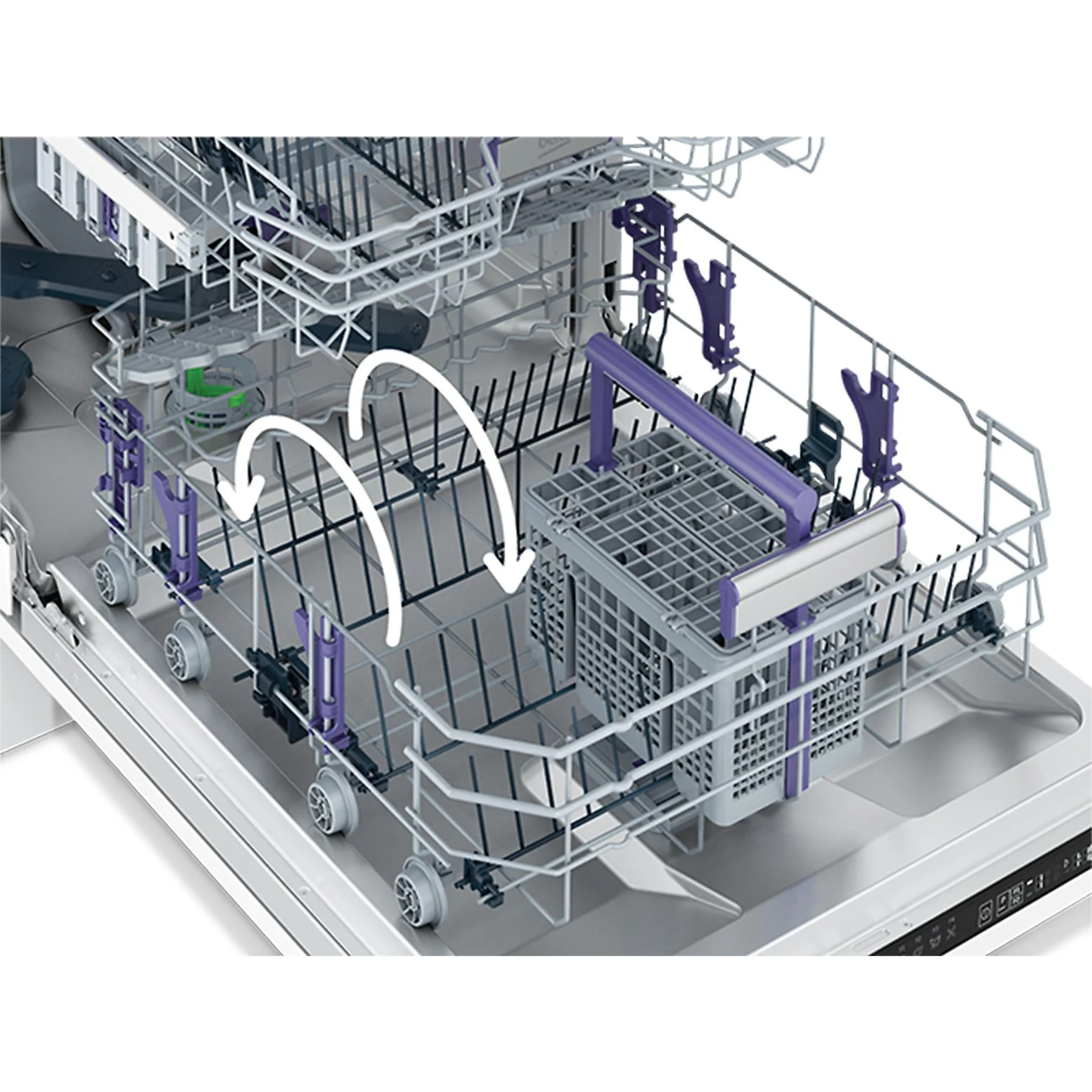 Questa lavastoviglie da incasso offre ampio spazio per 14 coperti ed è un affidabile aiuto quotidiano in cucina. I ripiani porta tazze sono regolabili in altezza, offrendo spazio per tazze grandi e piccole o posate lunghe. Proteggiti con WaterSafe+, un sistema di protezione dalle perdite che interrompe automaticamente l’erogazione dell’acqua in caso di perdite. Ora sia l’elettrodomestico che i tuoi pavimenti sono al sicuro. La funzione HygieneIntense offre non solo pulizia, ma anche maggiore salute. Grazie all’elevata temperatura di lavaggio di oltre 60 °C, un ciclo di risciacquo finale aggiuntivo a un minimo di 70 °C rimuove fino al 99,999% di tutti i batteri e virus.- Capacità: 14 coperti